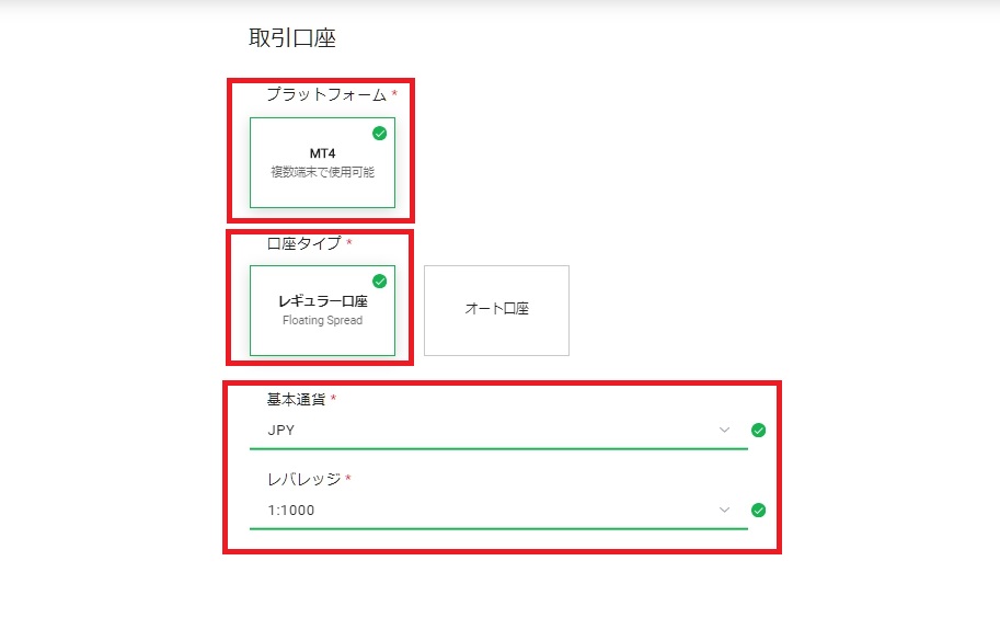 ●レギュラー口座を選択