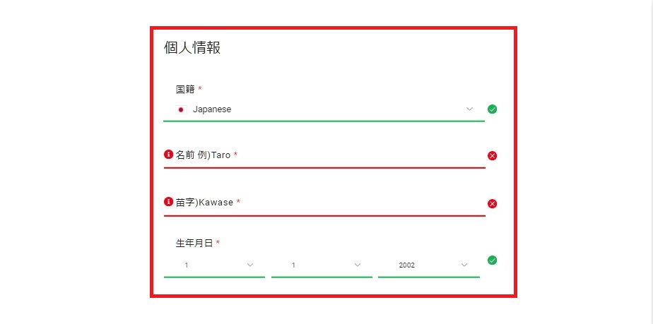 ●名前:Taro(アルファベット入力)