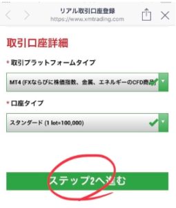 ●口座タイプはスタンダードを選択します。